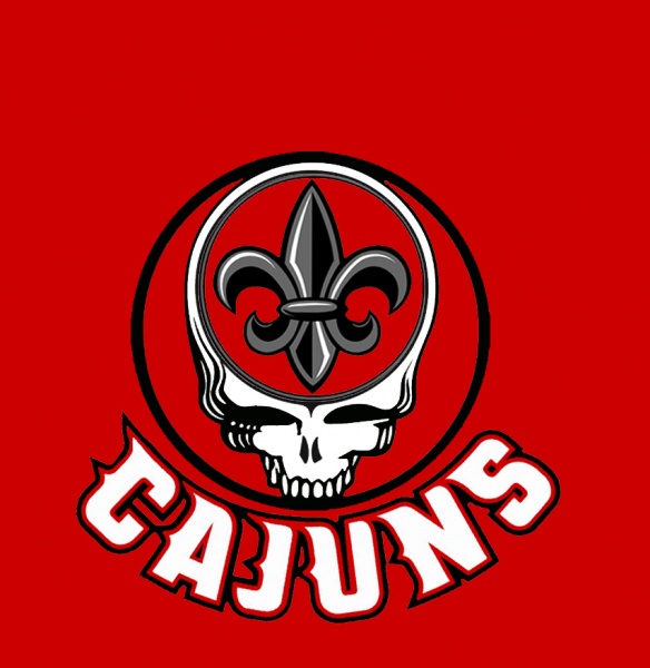 I found the official branding fonts by searching UL Lafayette branding style guide a while back. It'll bring up a PDF with branding instructions and font listings somewhere in it, you can then search and download the exact font or one in that family. However the text in the "ragin Cajuns" logo isn't a font, its custom line art that has to be recreated. And since its line art only the letters needed are created not the entire alphabet, so I'm not sure which font or letter style your looking for.
