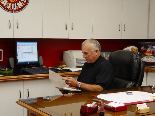 I saw him jogging yesterday morning by the athletic complex. He said the last few weeks have been very difficult, but he's also very satisified about the way things are going to improve the future of the football program.