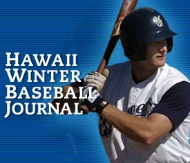 Turbine, he had a 1000 avg after the first game. He went 2-2. You can track his, and all, minor leaguers' stats at milb.com. Just type in the last name of the player to view current stats. Visit hawaiiwinterbaseball.com to read the news in Hawaii.