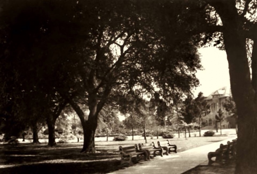 I noticed the oak trees lining the campus were only about 30 years old in those pictures. Doesn't look like baseball is being played in the quad anymore. Can't determine where the baseball field was.