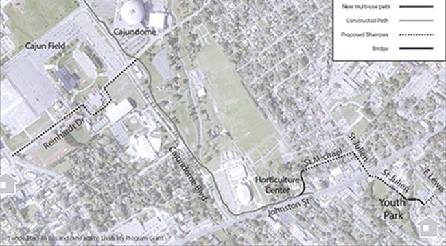 The existing two-mile path along Cajundome Boulevard, which has been in place since the fall of 2011, spans two points between Eraste Landry Road and Johnston Street.