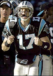 It didn't take long for Delhomme, a backup for five years in New Orleans before coming to Carolina, to unseat incumbent Rodney Peete. He replaced him in the second half of the season-opener and threw three touchdowns to rally the Panthers to a win against Jacksonville.