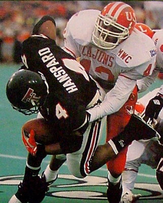 With no other Division I-A scholarship offers on the table, Delhomme signed with the nearby University of Louisiana.