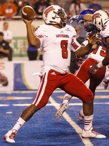 Looks like he is throwing a shoutput rather than a football. Watching UCF v. Houston. Houston's QB, Okorn, was lights out last year and can't complete a pass this year. His play has been as inept as Broadway's. Like UL, UH is hoping he breaks out of his funk and his skills resurface. Couldn't help but notice the similarities.