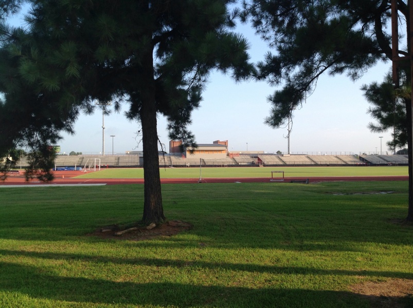 I took a few pics this morning from the other side.......not much, but I hope it gives you an idea of what it looks like. Also, it might not be easy to see but the track looks awesome, as does the field.....very green.