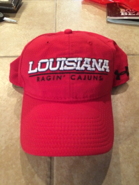 L - use on uniforms or paraphernalia. Any time we use UL, we have to legally have Lafayette with it, somewhere on the cap or shirt, etc. Using an "L" instead is legal and would eliminate the need for the city tag, like using Louisiana. Attached are a couple of examples. Also, see the Louisiana lettering on the attached cap that came off of the UL Bookstore website. It looks like the "Louisiana" that was formerly on the state license plate. I like the simple look of the "L" on it. We can still refer to the university as UL, just use the "L". Alabama and Arkansas both use an "A" and there is no confusion. Louisville uses an Old English "L", so we use something different, whatever is selected.