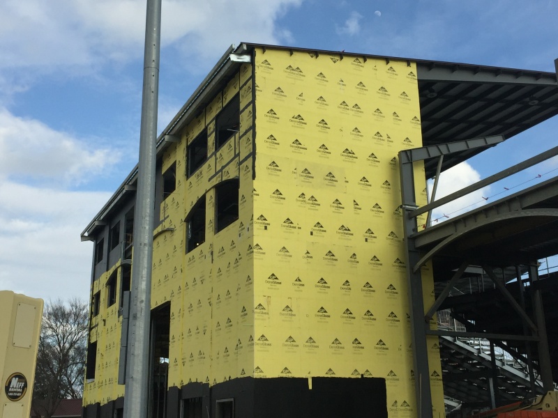 Some pics from this afternoon. In the one of the grandstand I especially liked the look of the cantilevered balconies of the suites.
