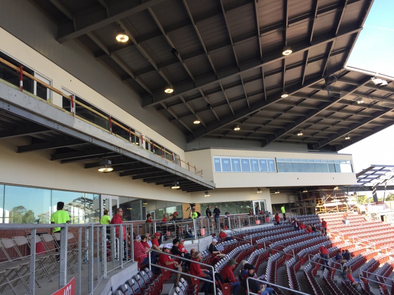 *All glass is in for the suites, club and press box. Not much trim on the outer portion of those areas (stucco, paneling, etc). Just adding the seats and railings for the suites