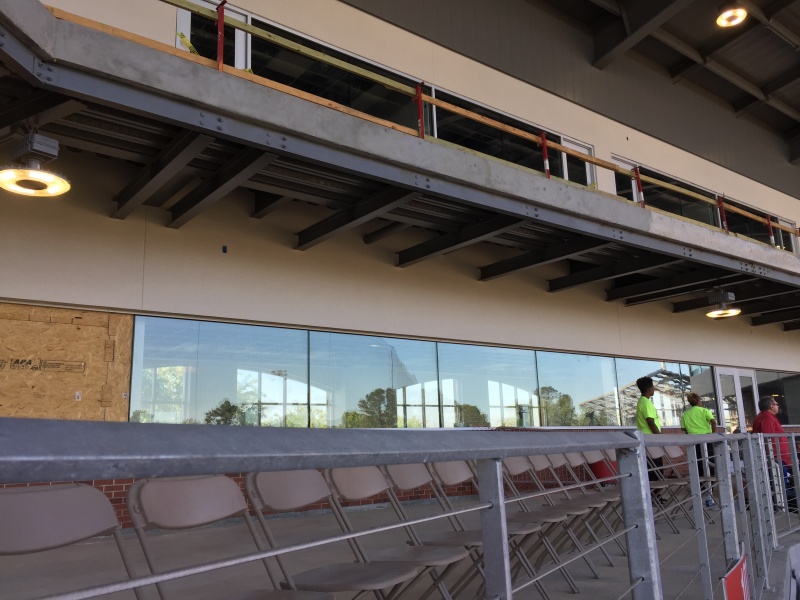 *All glass is in for the suites, club and press box. Not much trim on the outer portion of those areas (stucco, paneling, etc). Just adding the seats and railings for the suites