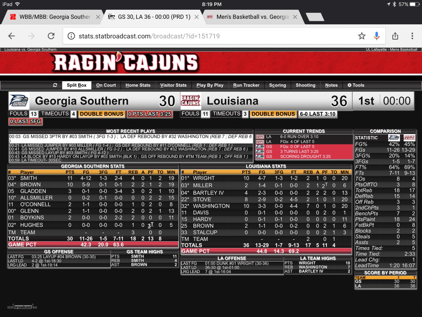 Officials in this game have been horrible calling more that one foul per minute of play. The white haired official assumes there will be a foul on every possession that goes under the basket. They just called a blocking foul when the player from the Cajuns that made contact didn't even have the ball.