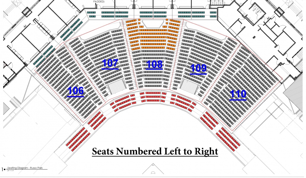 Someone had posted this a while back. I added the sections and the note about the seat numbering. I'm 99% sure they number from left to right as you view the diagram (same as sections do.) The bottom row of gray is Row 1