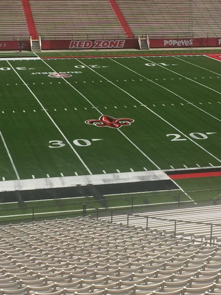 They could have move the word Cajuns in "RAGIN Cajuns" over to the right a little. The S in on the forty and The C is on the 38 1/2 yard line.