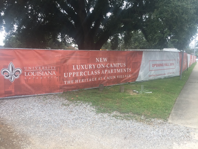 An update on the new apartment complex going up on Lewis St, which, per the signage is called 'The Heritage at Cajun Village.' Looks to me that they have done some major infrastructure adding sewage/fire hydrants, curbs, etc., and are about to pour the foundations on a lot of the buildings.