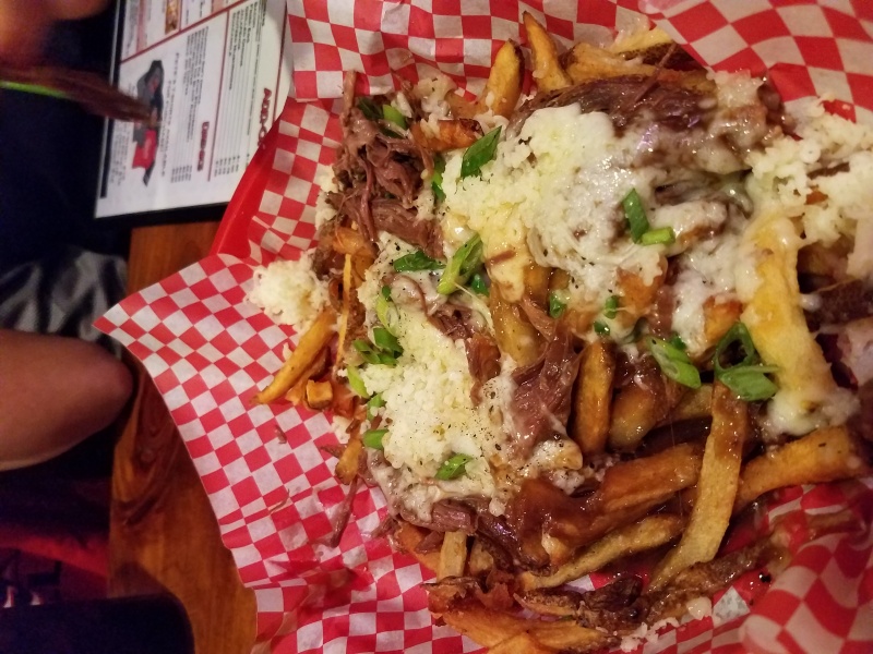 It was really great... Much improved atmosphere... They had UL game on most TV's with audio of UL game throughout restaurant. Not as dark and dingy. Arcade games are now in a separate room. We had these roast beef au jus french fries as appetizer (pic below)... roast beef, mozzarella on top of fries. Son had pulled pork quesadilla that was really good. I tried to stay healthy for entree and had seared tuna salad. Much more diverse menu. Something for everyone.