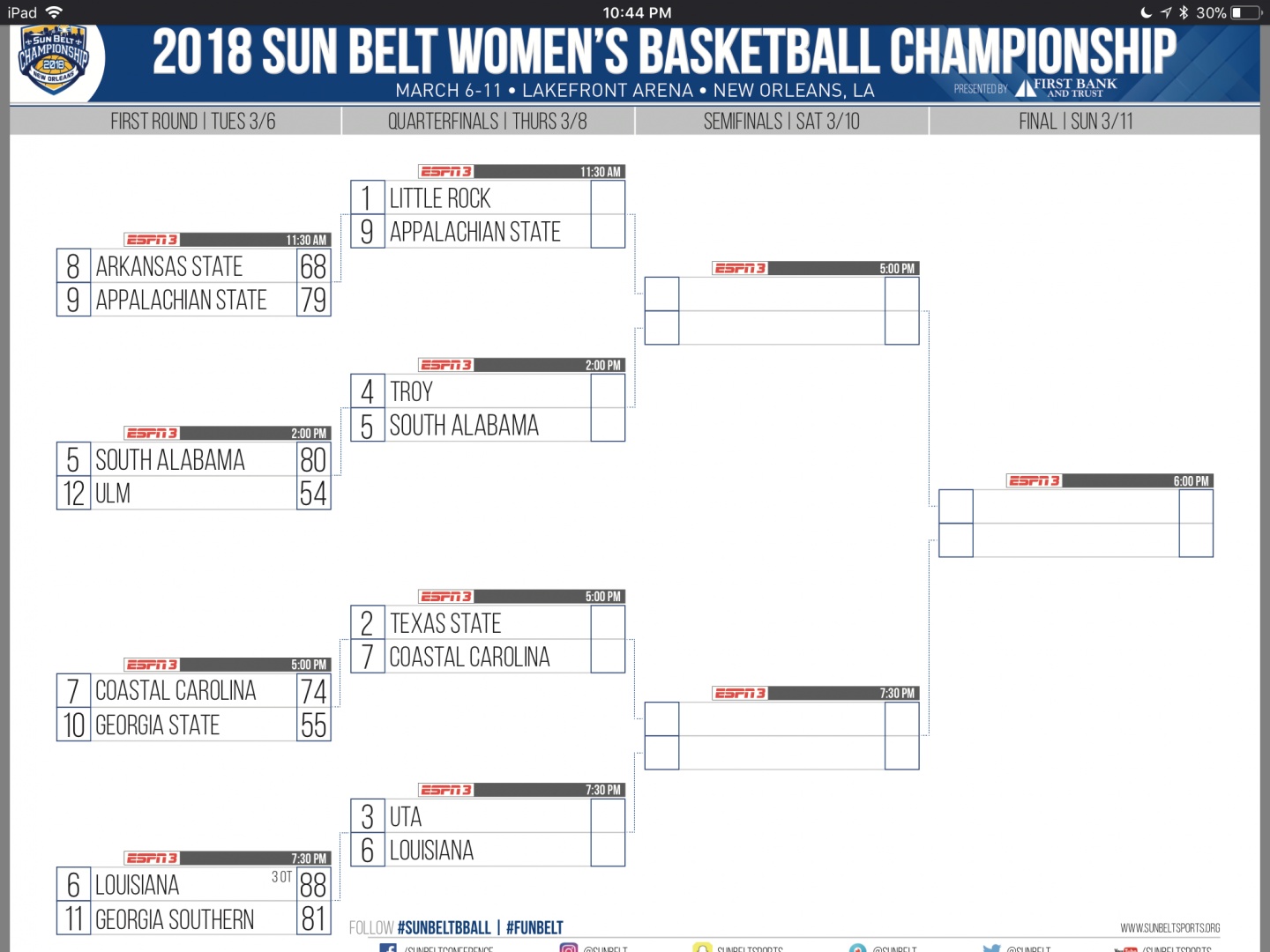 I never, ever want to sound overconfident (especially after tonight) but I don't see a scenario where we are not in the finals on Sunday. GA State, S. Al, and UlMost in the other bracket.