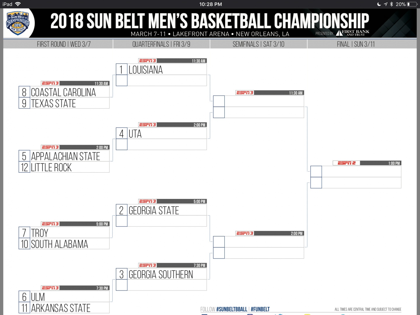 I never, ever want to sound overconfident (especially after tonight) but I don't see a scenario where we are not in the finals on Sunday. GA State, S. Al, and UlMost in the other bracket.