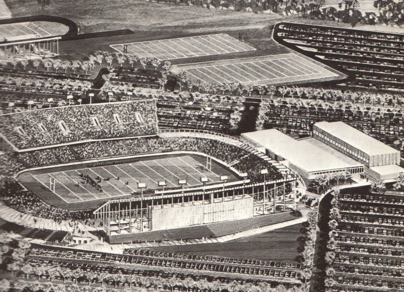 This I got off the UL alumni association Facebook page. These are the original drawing for Cajun Field. The only thing I would change is a small upper deck and nice press box on the home side. For future expansion if need be would be on the visitor side just like the picture. I agree with the canopy just for the fact it keeps the noise in the stadium.