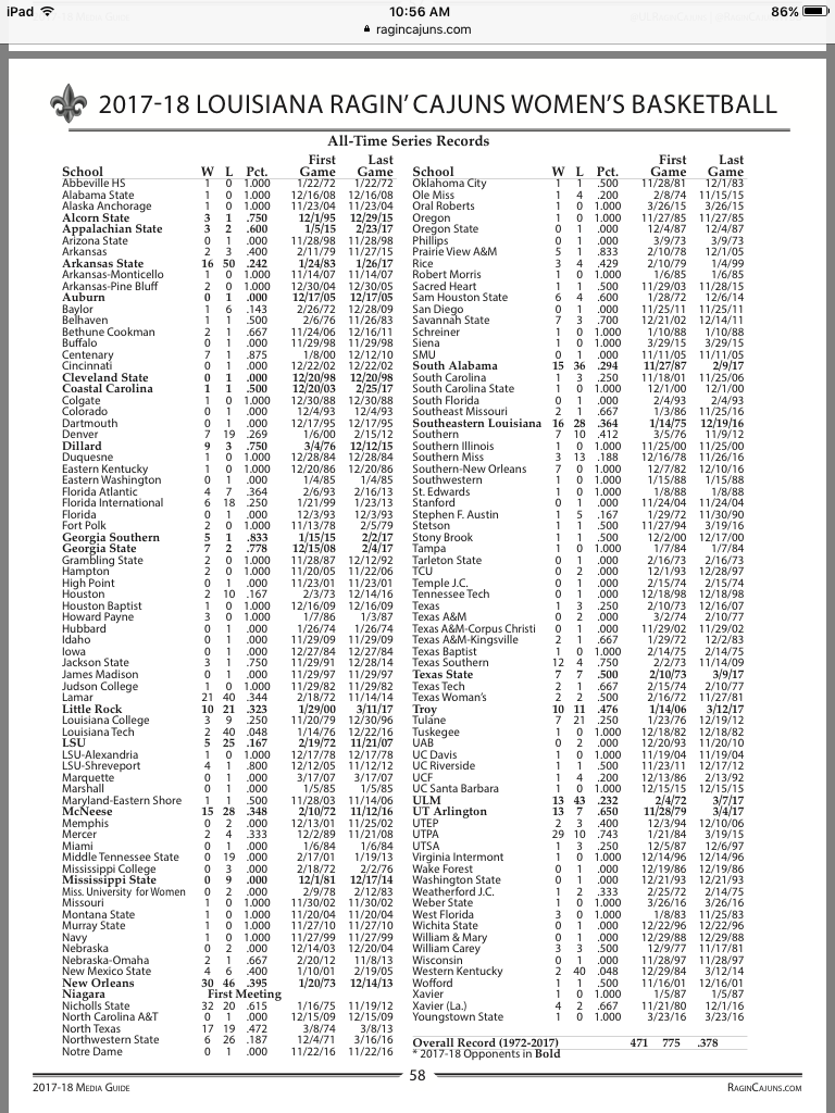 ragincajuns.com only goes back to 2008, but from 2008 -2018 the Cajuns lead the series 5-3 including 4 in a row. Last McNeese win was back in 2011 in Lake Charles, they also won in EKL in 2010 and 2008 in the CajunDome.