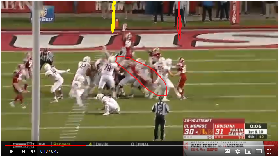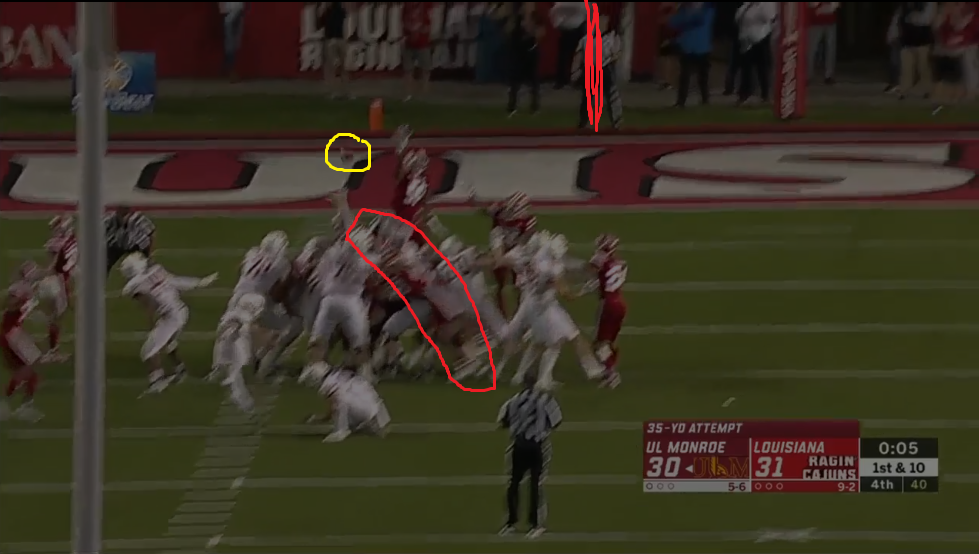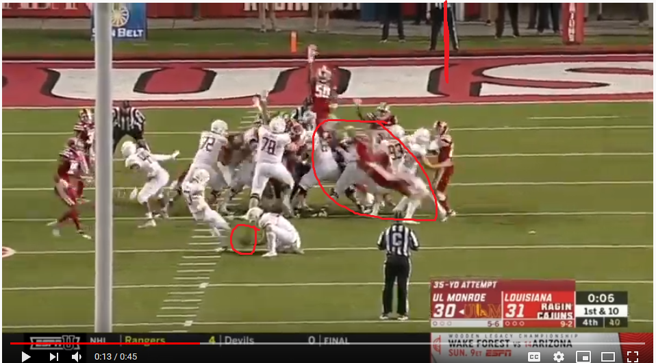 After piecing a few different videos together, you can see Greenhouse would have blocked the kick and possibly Jones, if the kick would have been online.