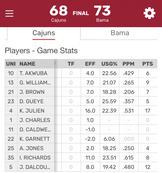 9. Default Re: Basketball VS. Bama