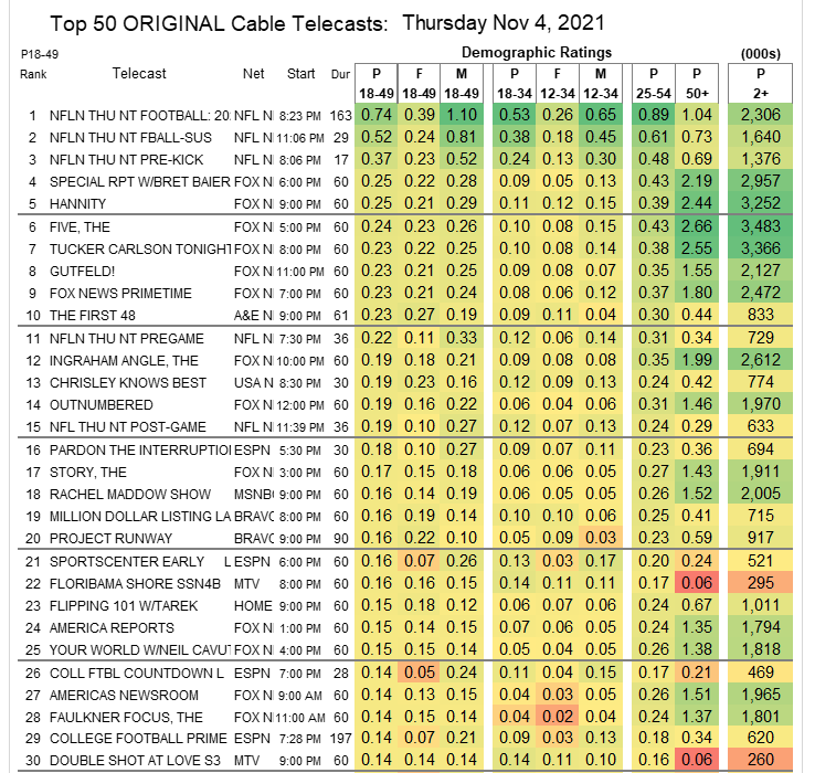Looks like the NFL and Fox News has the lines share of the top 30.