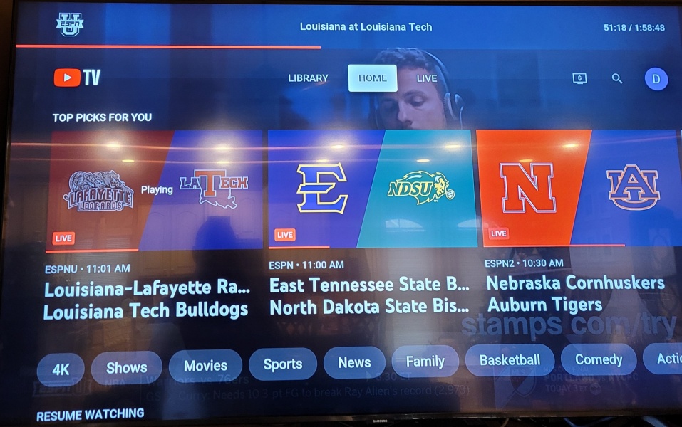 Poor youtube tv is confused. Top says Louisiana, then it says Louisiana-Lafayette and then logo it is the leopards