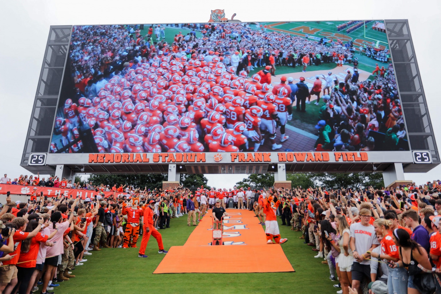 The Clemson football team and coaches literally run down a grass hill through their fans to get on their field. Leave the hill alone. Just make the horse shoe symmetrical.
