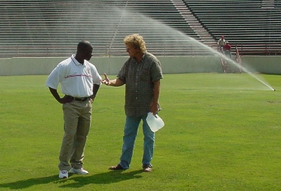 Next day: Ryckman in deep conversation with Coach Jenkins the running backs coach.