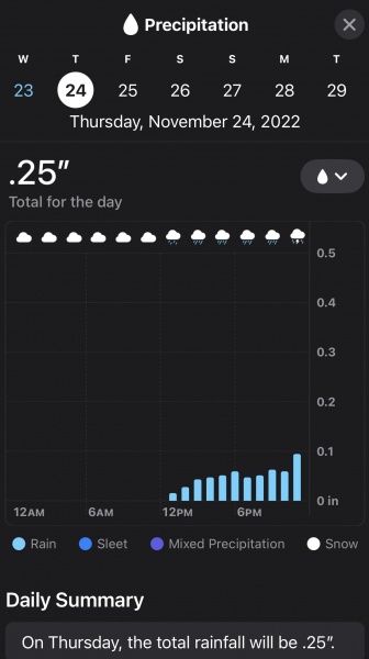 Just a note. There was nothing excessive about the rain we got on Thanksgiving day. Townsquare employees should not pretend to be weathermen.