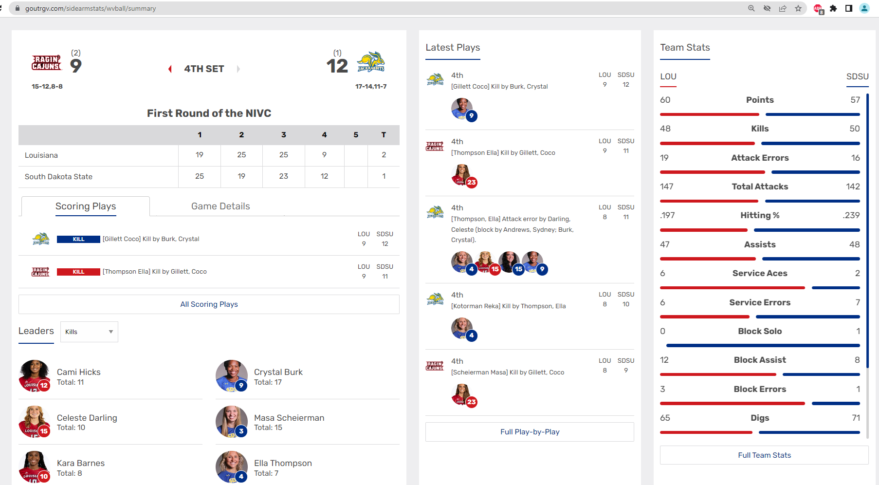 Set 4, 25-20 them. 5th set will determine the winner. Geaux Cajuns.
