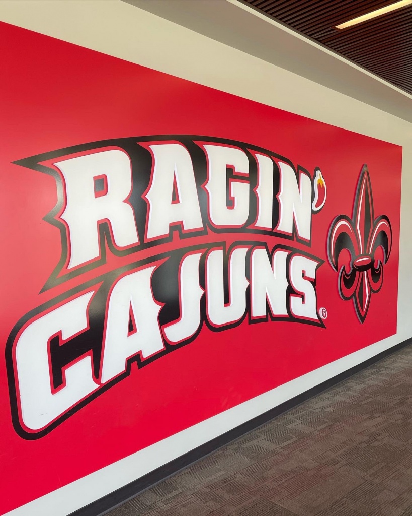 2. Update the Louisiana Ragin Cajuns (moniker) to a script font (see cap photo).