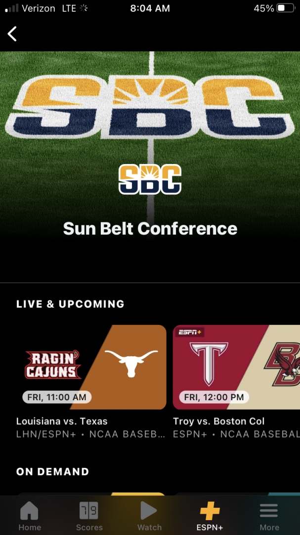 Guys, this is the same thing that happened last weekend vs LSU if you were watching UL on ESPN+. The games were listed on the SEC Network +, but were also streamed on ESPN+.