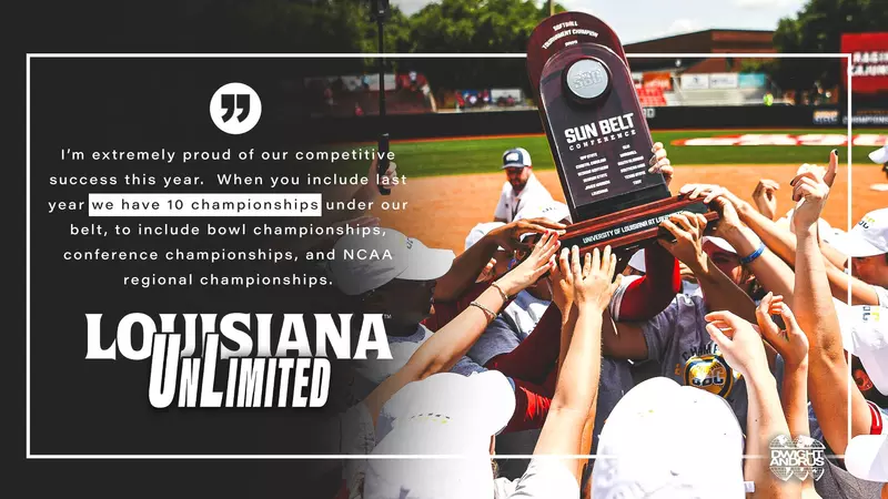Winning in college athletics is a tall task, but over the last two seasons, the Louisiana Ragin' Cajuns have done just that. Just this past year the Cajuns won conference championships in men's basketball, men's golf, and softball while also reaching the postseason in baseball, football, and volleyball.