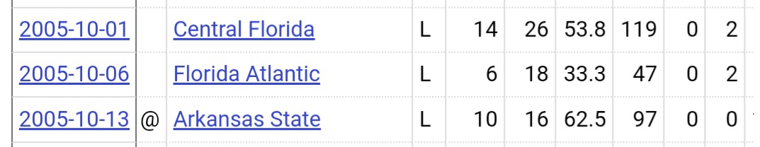 2005: Cajuns are a team struggling to find an identity. Down gos Jerry Babb and in comes Mike Desormeaux. The result was 4 years of a prolific zone read option that put up unreal offensive numbers.
