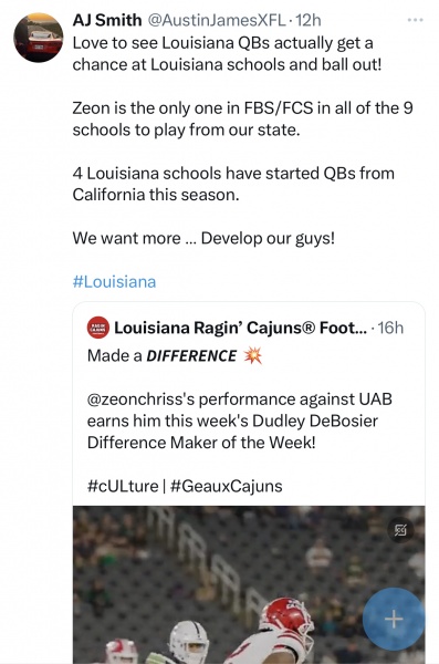 What does that say about high school QB coaching in the state? There's a reason there's so many QBs from California on rosters and it's coaching. Most Louisiana QBs end up as DBs or WRs in college because in Louisiana we use our best athletes as QBs. Here's the breakdown of FBS teams.