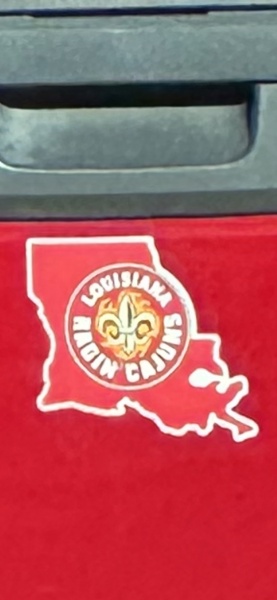 . . . on a red truck on Camelia in front of me . . . it was screaming Louisiana . . . I could not read what was in the middle of the state silhouette but could tell because of the colors it was supporting Louisiana . . . I had to blow it up to post on here . . . that one had too much in the circle . . . what 9211 has come up with would NOT have that issue . . . we need to complete the Louisiana branding with a Louisiana logo . . .