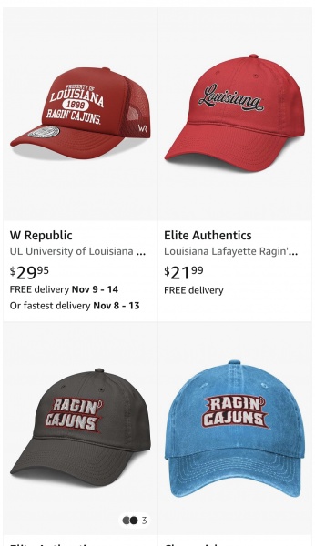 If the hat with the script Louisiana had white lettering, it would be my favorite. Aside from that, the hat that has LOUISIANA in block white letters is the best.