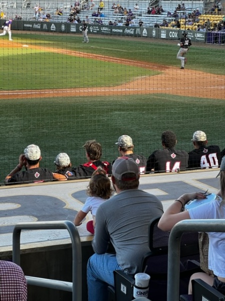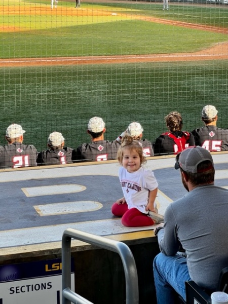 Was out there for the first part of the scrimmage with the wife and 2 year old. My little girl had a blast. Got to sit right behind the dugout and watch up close. Good bit of Cajun fans out to watch.