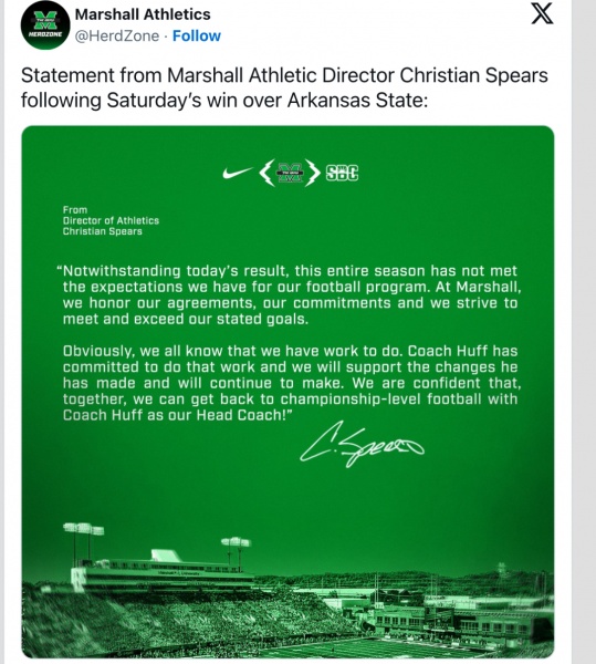 Marshall fans are more delusional than Cajun fans. They’re therefore more demanding and need emotional balm, see Jackie Chiles about Kramer using a balm.