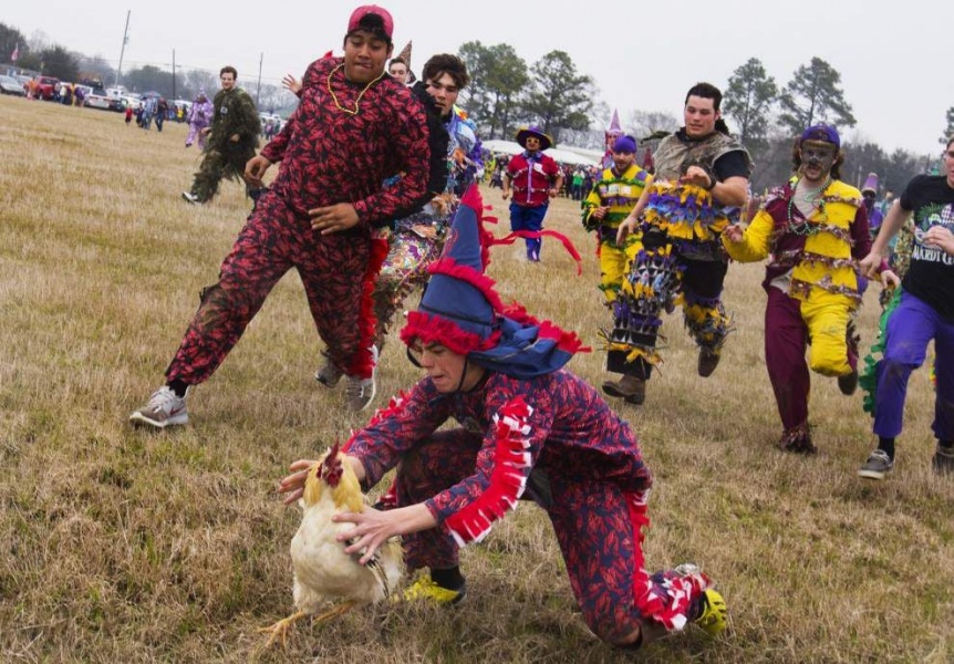 In this picture, you could see what could be a fun day when the Coastal Chanticleers come to Cajun Field. Imagine Al dressed up in traditional Courir de Mardi Gras outfit going from one tailgate to another begging for ingredients to the Chanticleer gumbo.