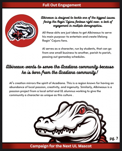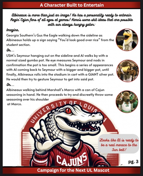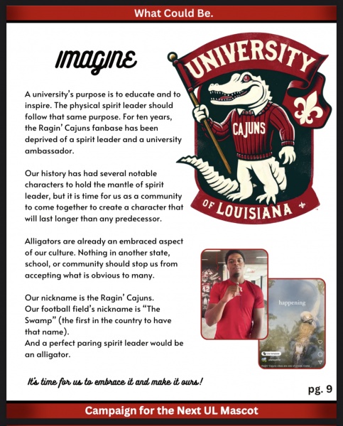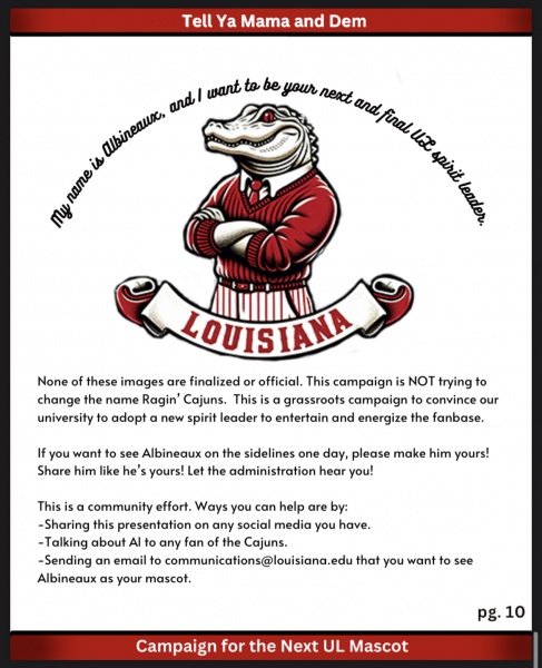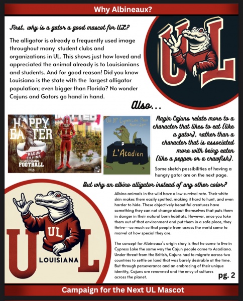If the University does not embrace this then shame on them. One of our own has been putting all this time and effort for free into this great project. This is the best mascot idea I have ever seen at UL. Make it happen!