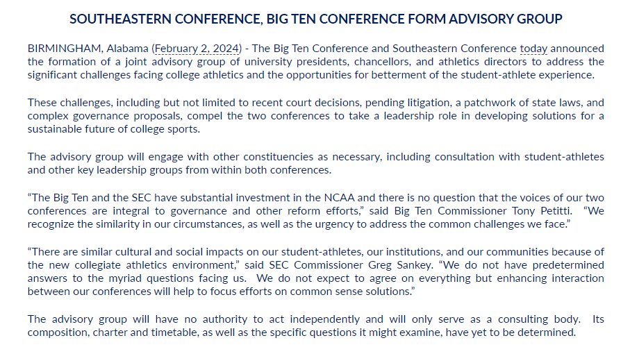 Let’s see how the big fish in this new alignment gets tired of splitting money with Vanderbilt and wake Forest, and the rest of the bottom dwellers.