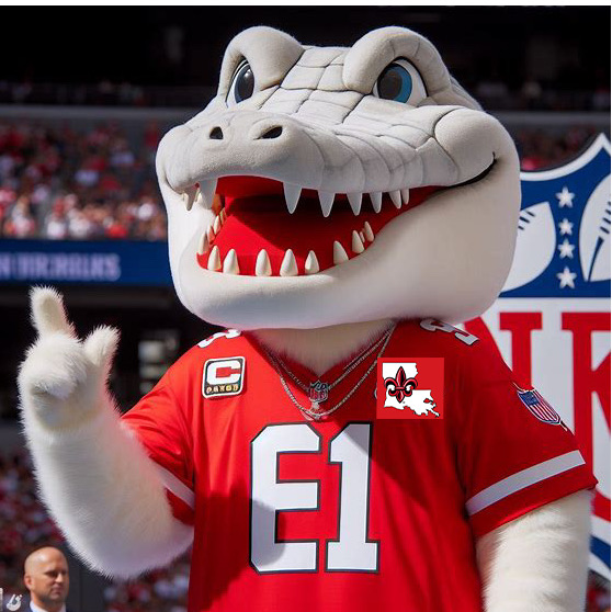 Also we need a mascot! We have a person that has created a great mascot that would be unique that would help us be identified as Louisiana. Have we not watch WaterBoy, or Swamp People? The main part of the show is that they hunt alligators.