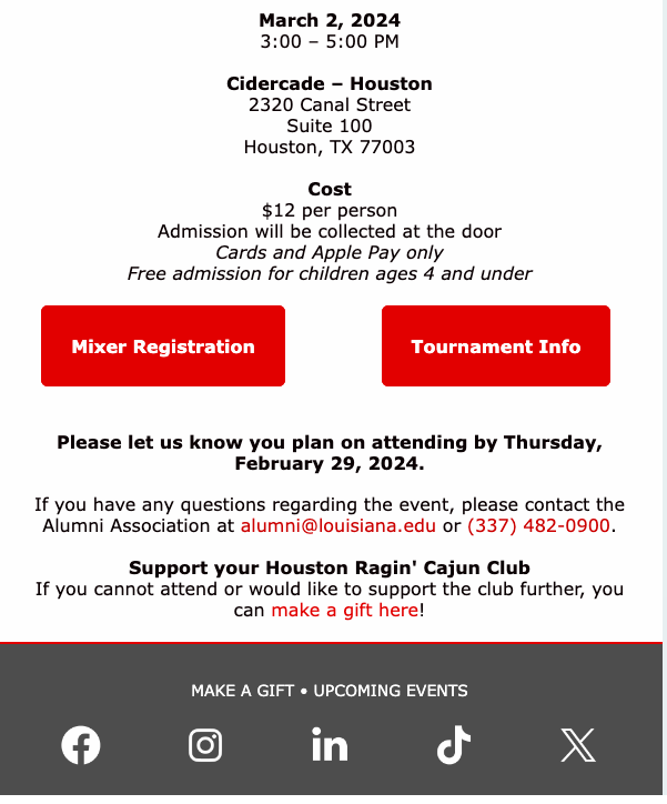 Is there anything planned by the alumni association? I haven’t seen anything. Last time we played there they had an event at home plate bar/grill across the street but they tore that thing down. I think we will be hitting up little Woodrow’s on the east side of 59 before the tsab game if anyone is interested in joining.