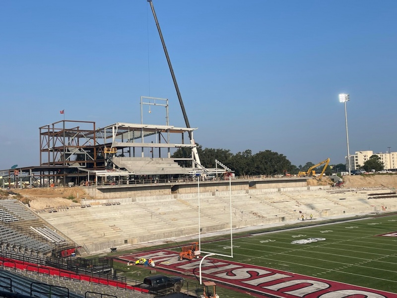Thanks. Good pic of progress. Speaking with someone from JB Mouton last week and they commented that they are slightly ahead of schedule. They had to be off the field by this week so they were focused on trying to complete as much as the lower stands as possible since it is more efficient to pour from field level than pump from above. I am not sure if this has been mentioned but the retaining wall on the sidelines has been pushed in 10-15' to get more room on the field. They will do similar on east sideline.