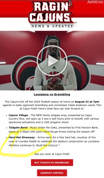 Espn gameday will likely sue for an injunction claiming they have copyright/trademark for football game hardhats