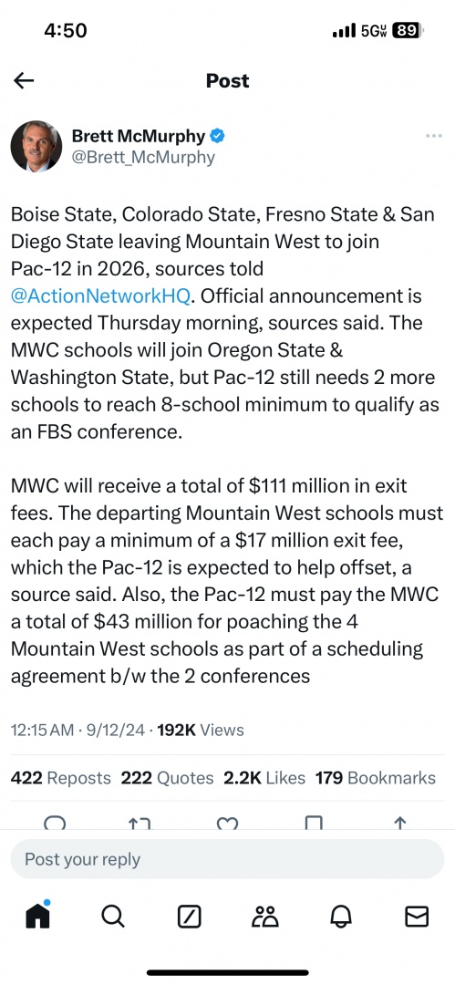 At the end of the day, this is about the PAC12 name holding onto their NCAA distribution units. As time passes and reality settles in, the units will fade away and so will the relevancy. MWC, although well managed, can’t pull off the coast to coast footprint. The WAC, CUSA and Big Sky is realistically where they’ll get new members.