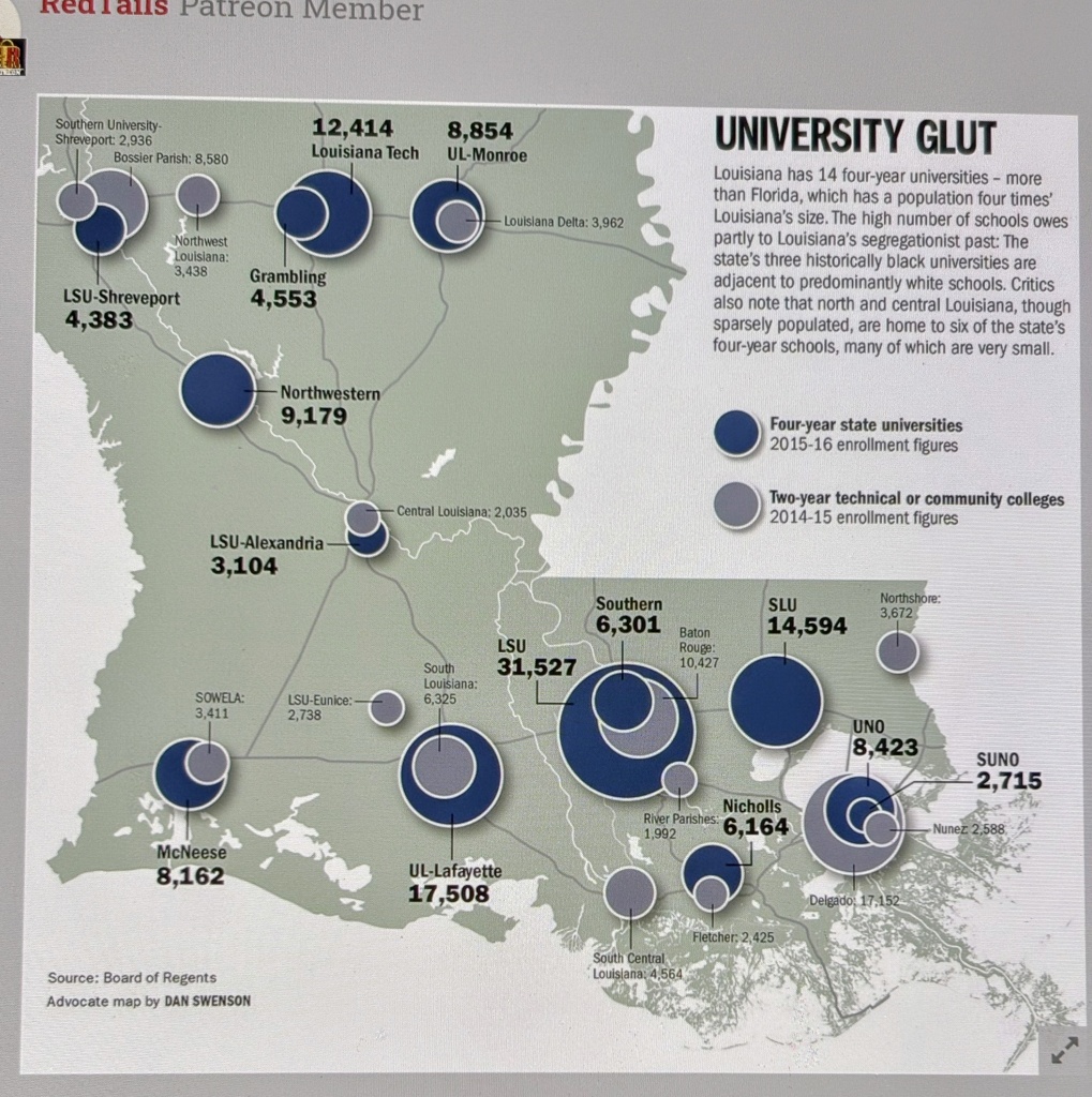 We have more 4 year universities than Florida. Florida has 4 times the population of Louisiana. That's the problem.