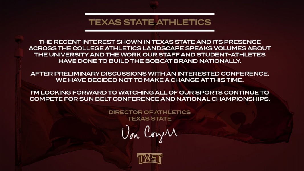It's clear the money is not there, and Texas St. doesn't move the needle right now.