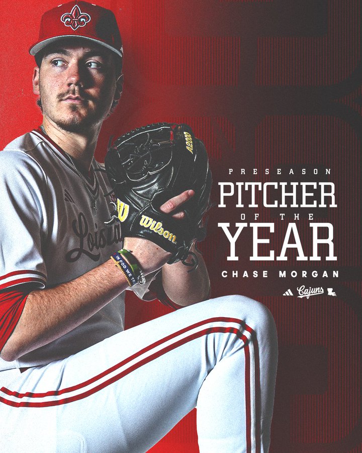 Coming off a Freshman All-American season, Louisiana's Chase Morgan was selected as the 2025 Sun Belt Conference Preseason Pitcher of the Year as the league's preseason poll and All-Conference team were announced on Wednesday.
